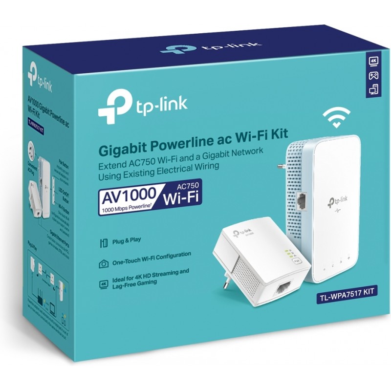 Powerline TP-Link TL-WPA7517 Kit v1 AV1000 Gigabit Passthrough AC Wi-Fi
