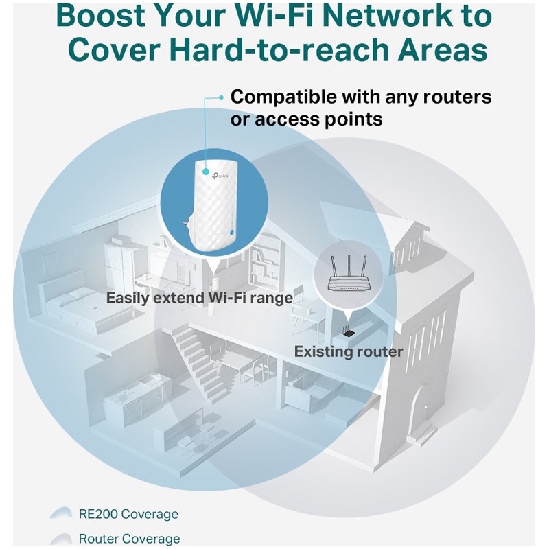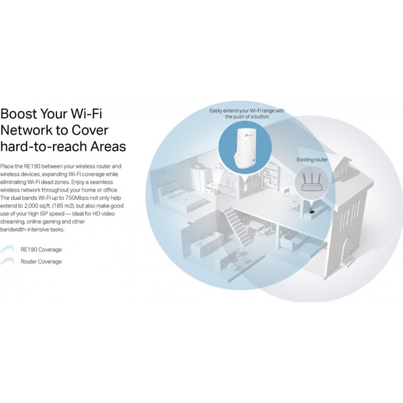 Τοποθετήστε το Tp-Link RE190 μεταξύ του ασύρματου δρομολογητή και των ασύρματων συσκευών σας, επεκτείνοντας την κάλυψη Wi-Fi ενώ εξαλείφετε νεκρές ζώνες Wi-Fi. Απολαύστε ένα απρόσκοπτο ασύρματο δίκτυο σε όλο το σπίτι ή το γραφείο σας.