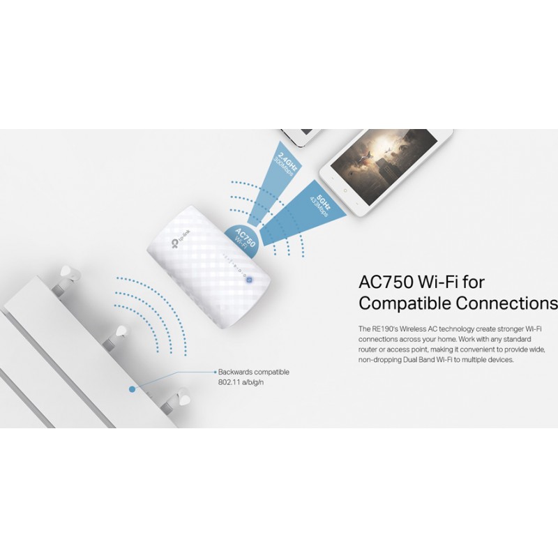 WiFi Extender Dual Band (2.4 & 5GHz) 750Mbps TP-LINK RE190 v5 Mesh