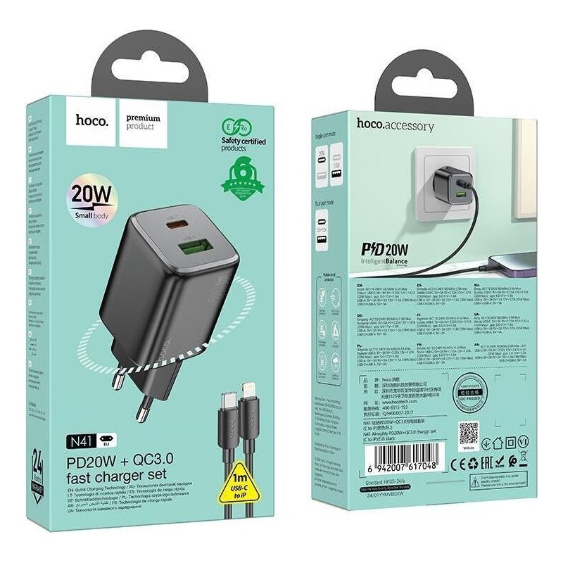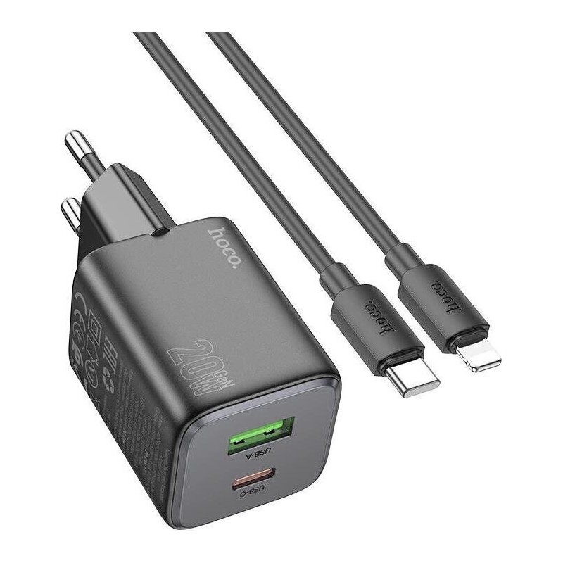 Hoco Φορτιστής Για Iphone με Θύρα USB-A και Θύρα USB-C και Καλώδιο USB-C - Lightning 20W Power Delivery / Quick Charge 3.0 Μαύρος (N41 Almighty)